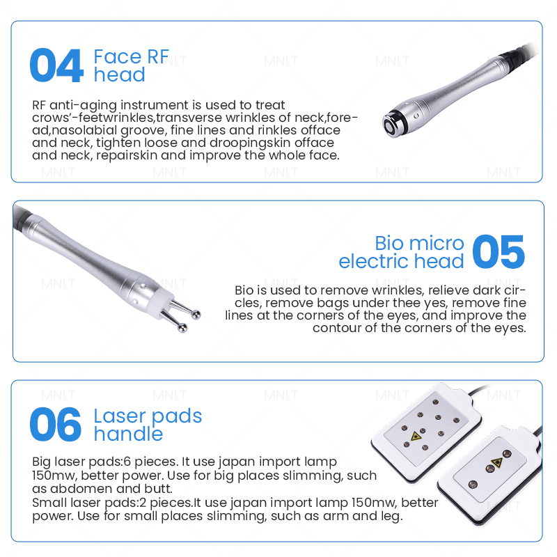 Our 6-in-1 device combines ultrasound cavitation, radio frequency, vacuum negative pressure and fat laser technology into one, providing a comprehensive body shaping solution. Beauty salons can flexibly choose different treatment modes according to customer needs and tailor the best body shaping plan for each customer.
