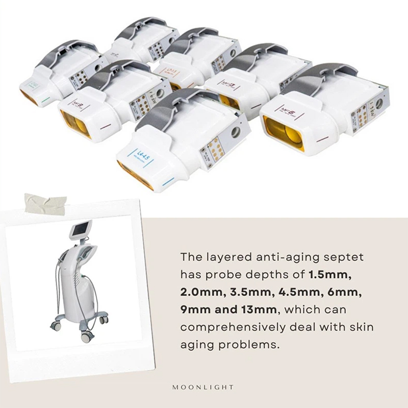 5. The layered anti-aging septet has probe depths of 1.5mm, 2.0mm, 3.5mm, 4.5mm, 6mm, 9mm and 13mm, which can comprehensively deal with skin aging problems;