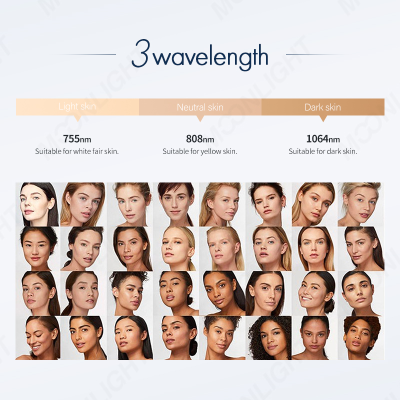 - Triple-wavelength precision: 755nm + 808nm + 1064nm wavelengths, calibrated to target melanin in hair follicles across all skin tones (from fair to dark) and hair types (fine, coarse, light, dark).