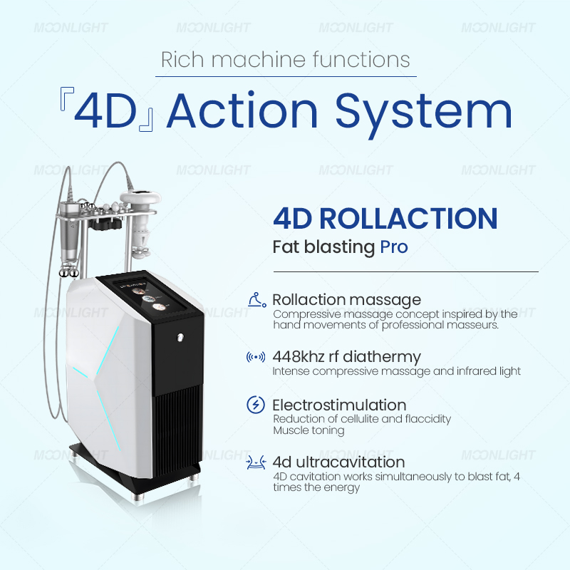 Shandong Moonlight Electronic Technology Co., Ltd., an 18-year leader in professional aesthetic equipment R&D and manufacturing, officially launches its 4D Fat Blasting Machine. Headquartered in Weifang (the world’s kite capital), this innovative non-invasive device integrates 4D Rollaction, 448kHz radiofrequency (RF), 4D cavitation, EMS electrical stimulation, and infrared therapy to deliver targeted fat reduction, cellulite smoothing, and skin tightening—all without surgery, downtime, or generalized weight loss. Crafted for global beauty salons, clinics, and wellness centers, it replicates the precision of professional massage therapists’ hands (mimicking kneading and compression techniques used in high-end spas) while amplifying results with scientific energy technology. Backed by ISO/CE/FDA certifications (FDA 21 CFR Part 890 for aesthetic medical devices and EU MDR 2017/745), it meets global regulatory standards for safe, effective use.