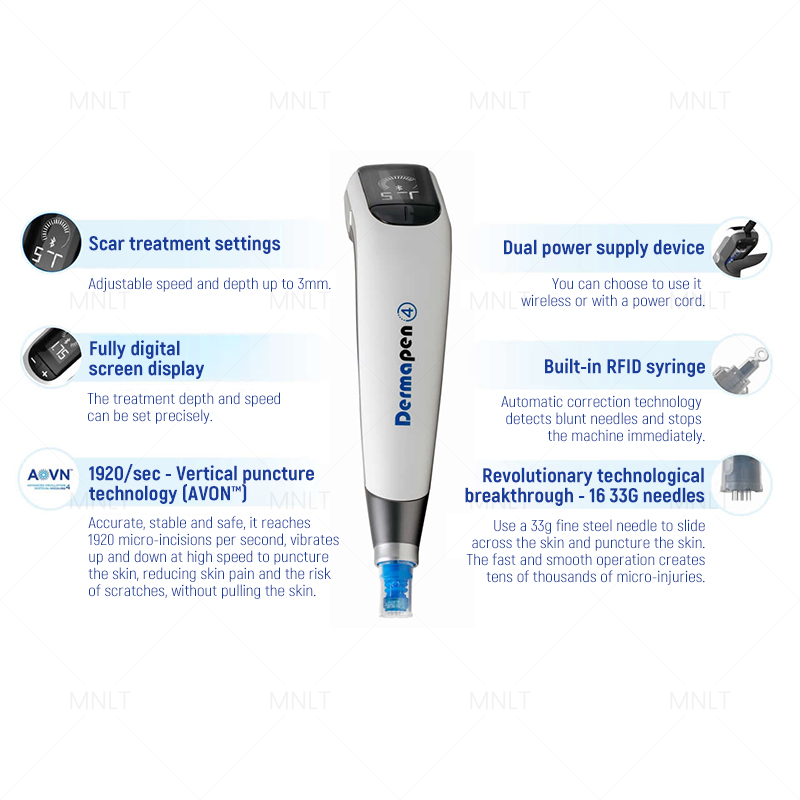 - Dermapen4: With the synergistic effect of skincare solutions, it has a wider penetration range, ensuring nutrients reach the dermis and deliver maximum results.