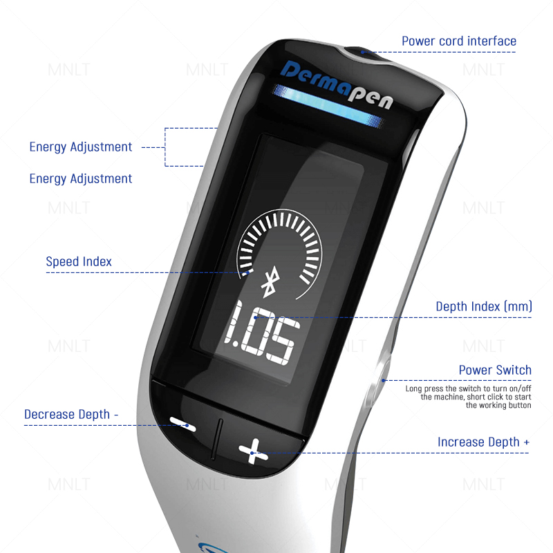 - A: The Dermapen4 features an intuitive 4.3-inch digital screen with simple controls—long press to turn on/off, short click to start, and easy depth/speed adjustment. It’s user-friendly for both beginners (with simple settings) and professionals (with advanced controls), and we provide online training to get your team up and running quickly.