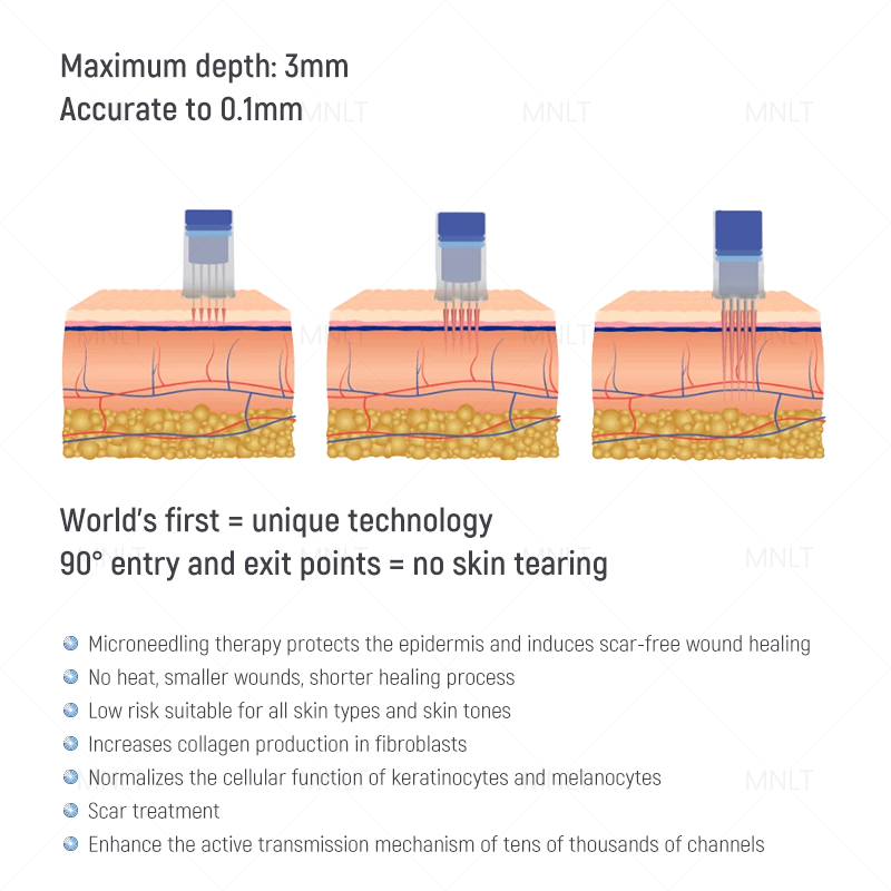 - Vertical Puncture Advantage: The 1920/sec vertical puncture technology ensures accurate, stable, and safe treatment—reducing pain and scratch risk, with no skin pulling.