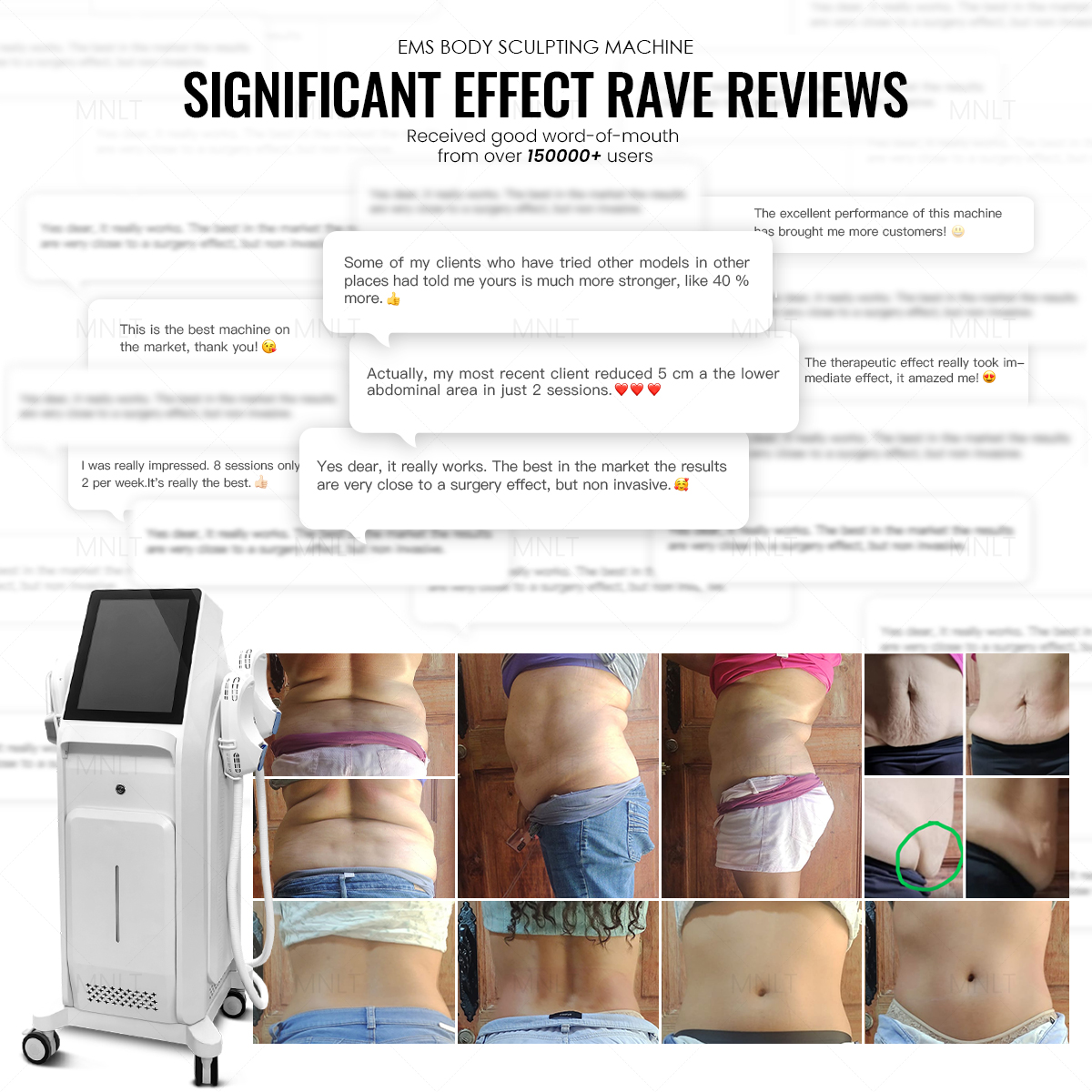 We are thrilled to officially launch our flagship EMSCULPT body sculpting system — a professional, non-invasive body shaping and pelvic floor rehabilitation device that merges cutting-edge HI-EMT technology, ergonomic engineering, and industry-leading stability. Built for global beauty salons, clinics, wellness centers, and distributors, EMSCULPT delivers effortless fat loss, muscle building, and body contouring without intense exercise or sweat—while offering clinical-grade pelvic floor muscle repair. Backed by 18 years of hands-on experience in researching, developing, and manufacturing professional beauty equipment, Shandong Moonlight brings you a proven solution trusted by over 150,000 users worldwide, with rave reviews and verified results.