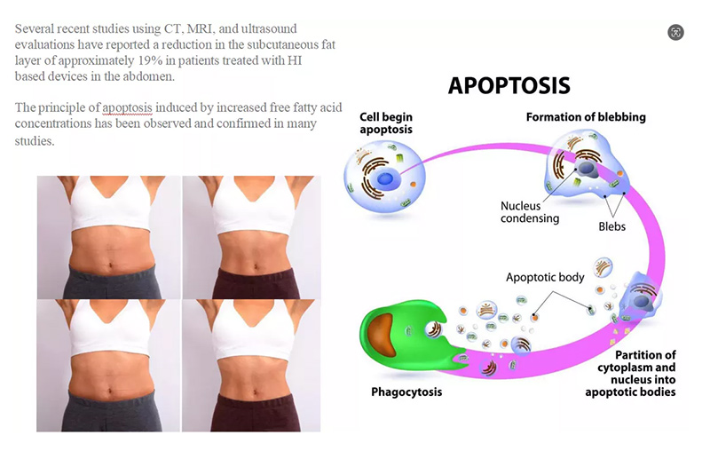 Clinical validity is at the heart of EMSCULPT’s effectiveness. Recent studies using CT, MRI, and ultrasound evaluations have consistently reported a 19% reduction in subcutaneous abdominal fat in patients treated with HI-EMT-based devices. The mechanism of fat cell apoptosis (cell death) induced by increased free fatty acid concentrations has been observed and confirmed in multiple peer-reviewed studies—reinforcing our commitment to science-backed, reliable products.