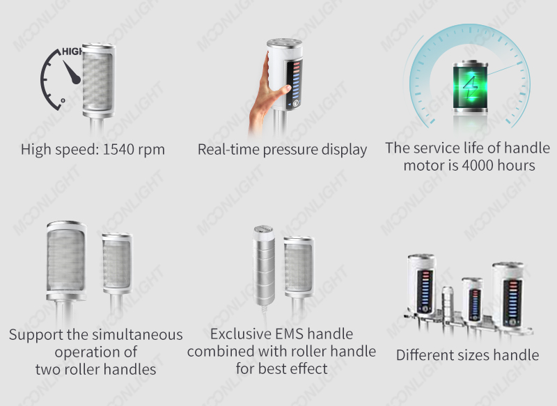 - Dual-Handle Simultaneous Operation: Supports two roller handles working at the same time, cutting down treatment time for large body areas (e.g., thighs, abdomen, back) and letting you serve more clients daily.
