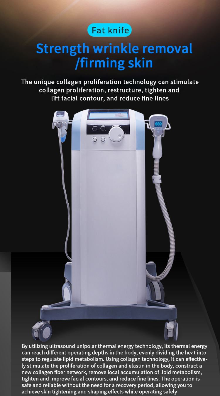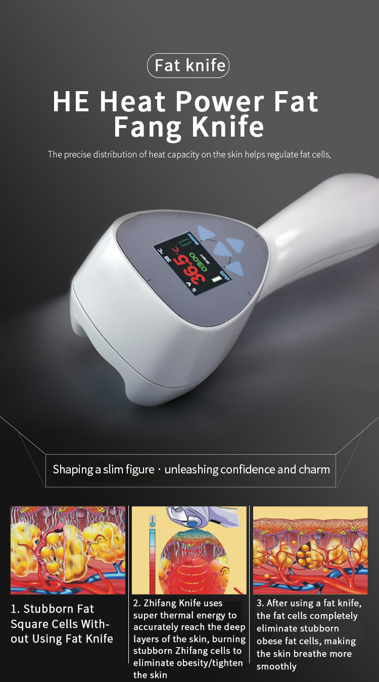 The Fat Knife uses HE+ultrasound technology to activate collagen fibroblasts, stimulating the production of new collagen fibers and restructuring damaged skin cells. This not only tightens skin after fat reduction but also delivers whitening, rejuvenation, and wrinkle reduction—all in one device. Without the Fat Knife, skin can become loose and wrinkled after fat loss; with it, skin stays full, delicate, and youthful, with enhanced elasticity and a radiant glow.
