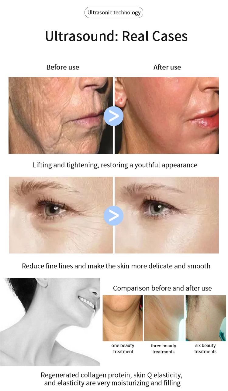 - After 3 Treatments: Noticeable contouring—slimmer waist, toned arms, and lifted buttocks; facial wrinkles reduced, skin more radiant.