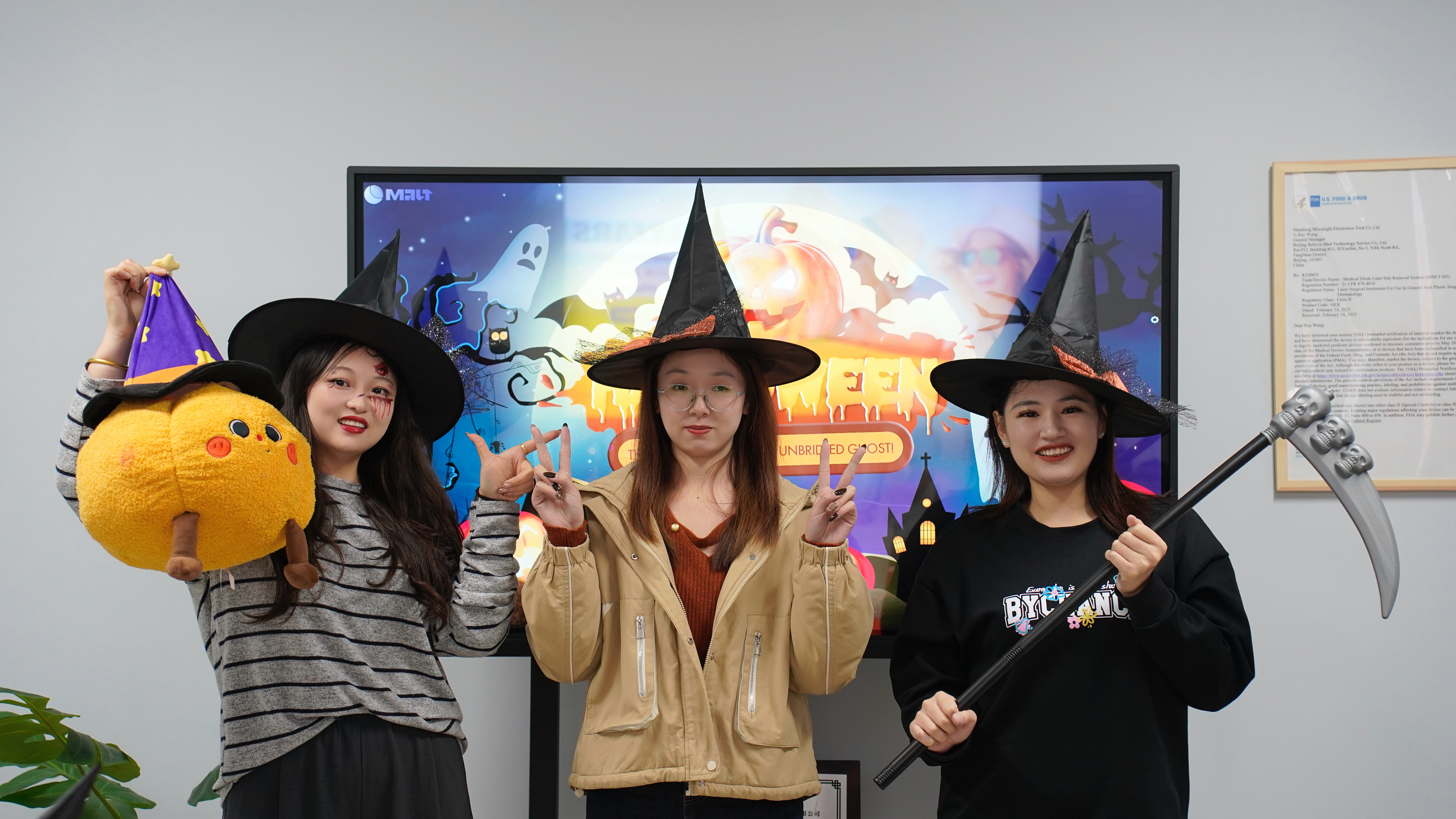 Weifang, China – This Halloween, Shandong Moonlight Electronic Technology Co., Ltd. hosted an exciting office Halloween party, bringing together employees for an evening of creativity, games, and team bonding. Colleagues showed up in all kinds of imaginative costumes, enjoyed interactive games, and even joined together to “trick-or-treat” the boss for candy!
